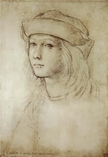 Raphael, Self Portrait, c.1499, Chalk on paper, 38 x 26 cm, Ashmolean Museum, Oxford, UK.